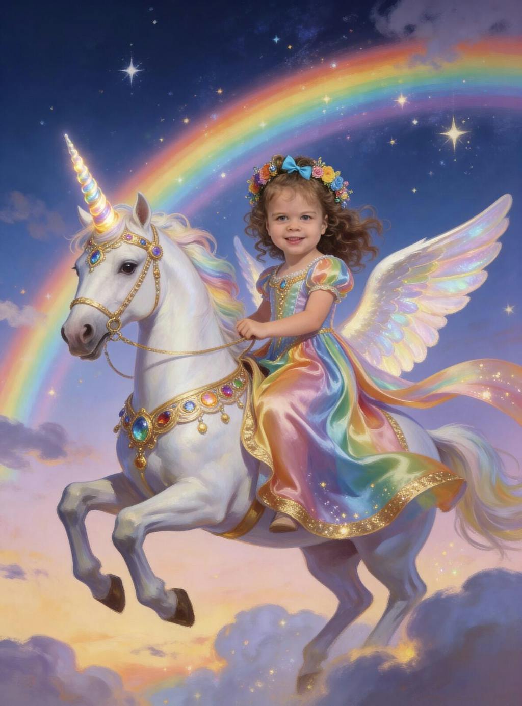 Het doet me enorm veel plezier dat je opnieuw een bestelling hebt geplaatst en dat het resultaat je weer niet heeft teleurgesteld. Een vliegende Unicorn – wat een prachtig thema voor je kleindochter!